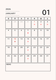 遅くなりましたが、1月の休みとご予約可能日案内です。