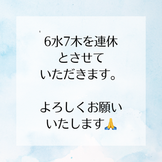 6水、7木は連休とさせていただきます。